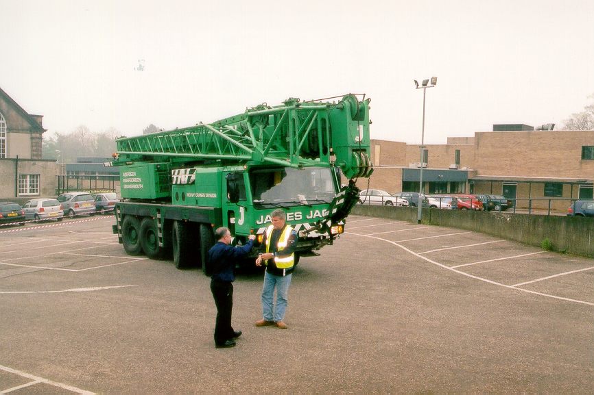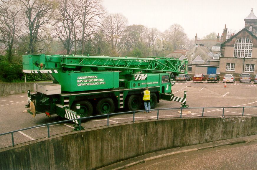 Because of the slope of the car-park, the crane had to